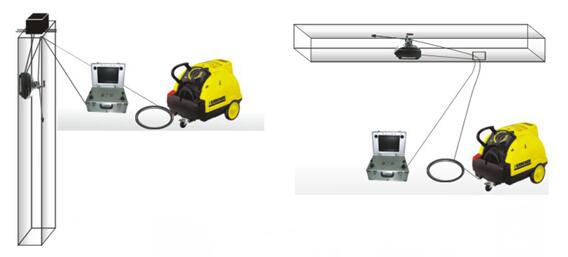 全新油煙管道清洗機器人利用熱壓(>120巴)配合專用化學除油清洗劑(pH>12,對環境無任何不良影響)就能清洗油煙管道內的油垢,通過這種方法使油污回到初始的液體狀態,從而將油污從管道深處清洗出來。
