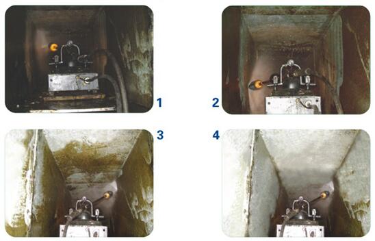煙道內情況復雜,有些死角人力范圍無法達到,根本無法清洗
